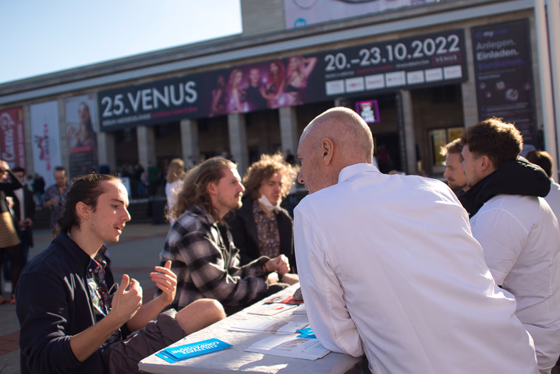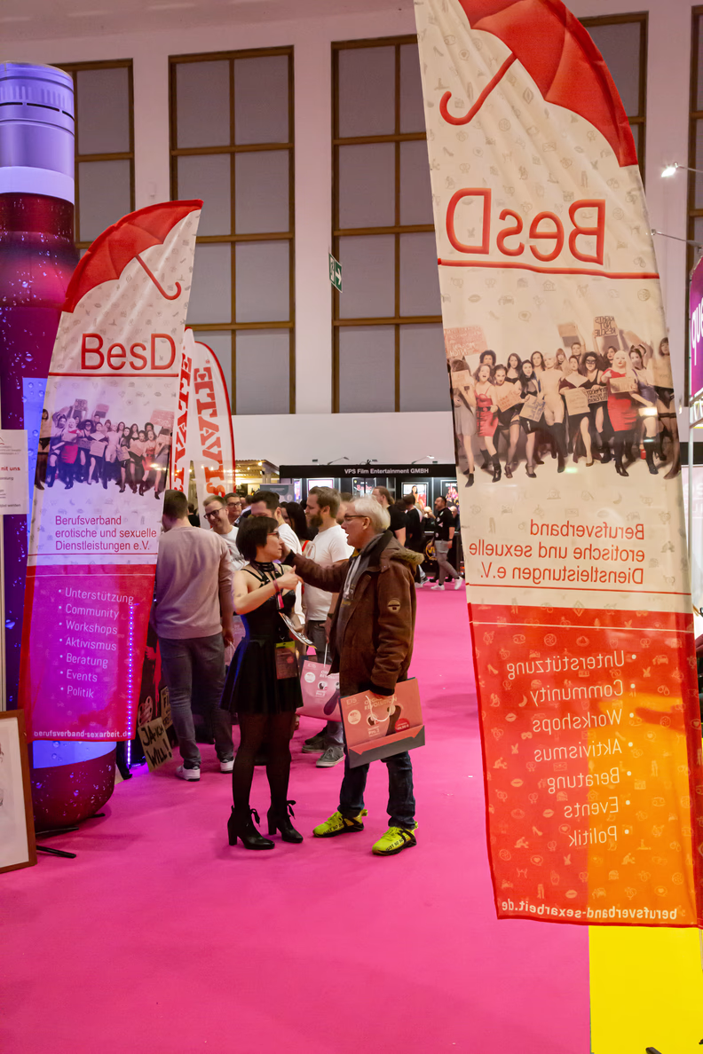 Die jähr­li­che VENUS-Mes­se fin­det seit 1997 statt und ist heu­te die größ­te Erotik‑ und Sexlifestyle‑Messe Euro­pas. Der Berufs­ver­band ist regel­mä­ßig auf der Mes­se ver­tre­ten, um über Stig­ma­ti­sie­rung auf­zu­klä­ren, Kolleg*innen auf den Ver­band auf­merk­sam zu machen und sich als Teil der Bran­che zu posi­tio­nie­ren.