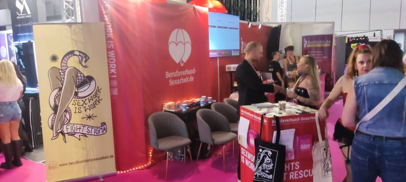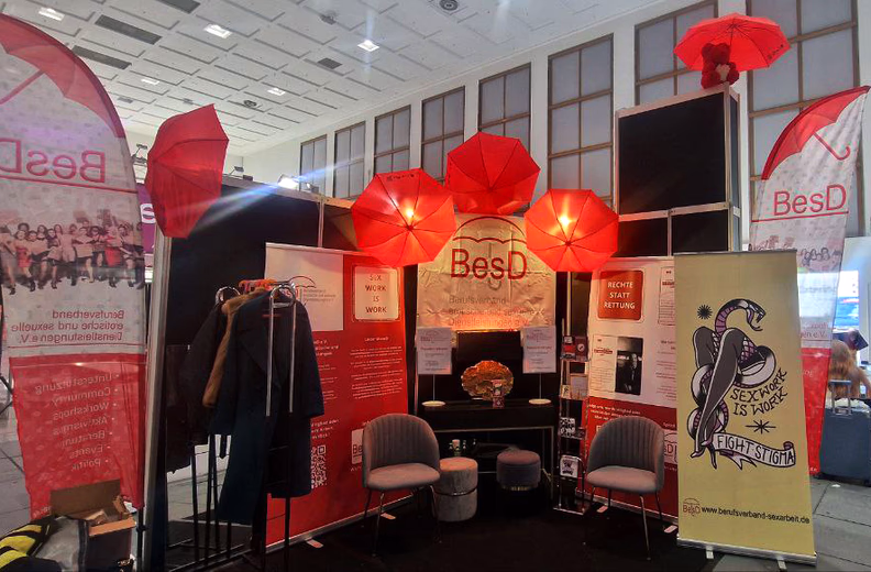 Auch 2024 war der Ver­ein wie­der mit einem Info­stand auf der Mes­se und infor­mier­te über sei­ne Arbeit, klär­te über Sex­ar­beit auf und gewann neue Mit­glie­der und Förder*innen.